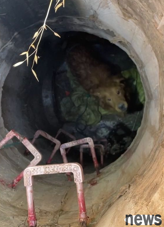 After fire rescue personnel arrived at the scene, they saw a golden retriever dog falling into a well about four to five meters deep.
