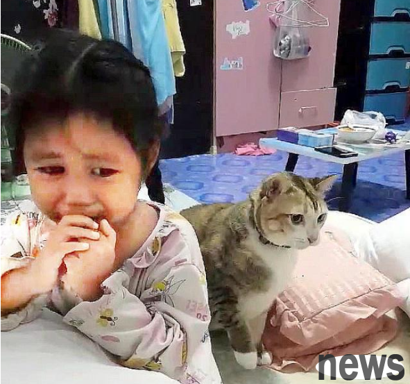 The mother was instantly amused by the cat's movements, and pretended to reach out to beat the little girl. Every time the cat helped her, she was blocked by it before her mother touched her hand. It seemed to be saying, "With me here, no one dares to bully my little master! Even the big master cannot!"