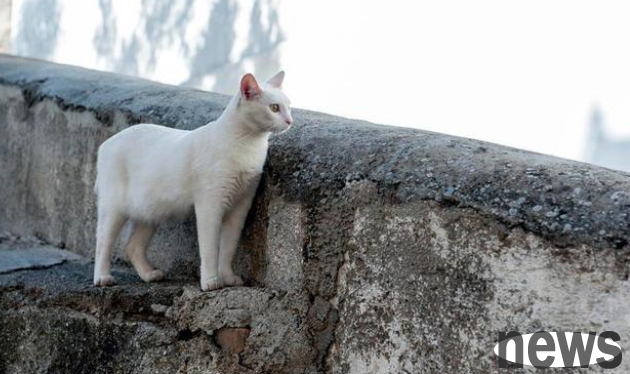The white cat is timid by nature, but does not want to get close to people. Every time a student approaches it, the cat will be frightened and run away. Only after the people leave does the cat dare to come out to eat, but by that time, there is not much food left by other stray cats.