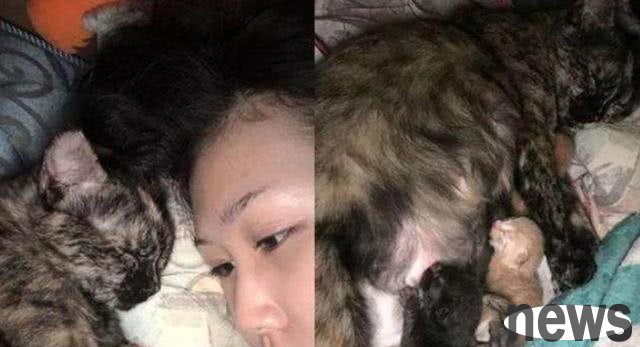Only then did the woman realize that the mother cat had given birth in the middle of the night. When she learned the reason, she was so happy. She didn't expect to receive such a surprise in the middle of the night. She had been looking forward to this day for a long time. She never expected to see the kittens in this way and give herself a surprise while she was sleeping. I believe anyone would be surprised when encountering this kind of situation! This is especially true for sensitive girls.