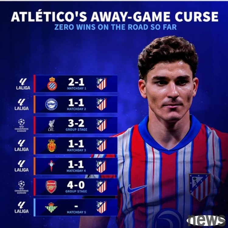 Away bug? Atletico Madrid has only recorded 3 draws and 3 losses in 6 away games in all competitions this season, and has yet to win.