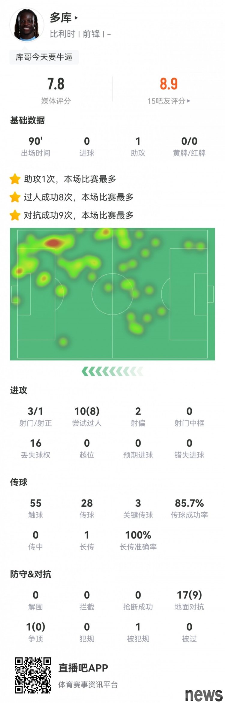 According to media statistics, Doku completed 34 breakthroughs in this World Cup European qualifier, at least 15 more than any other player.