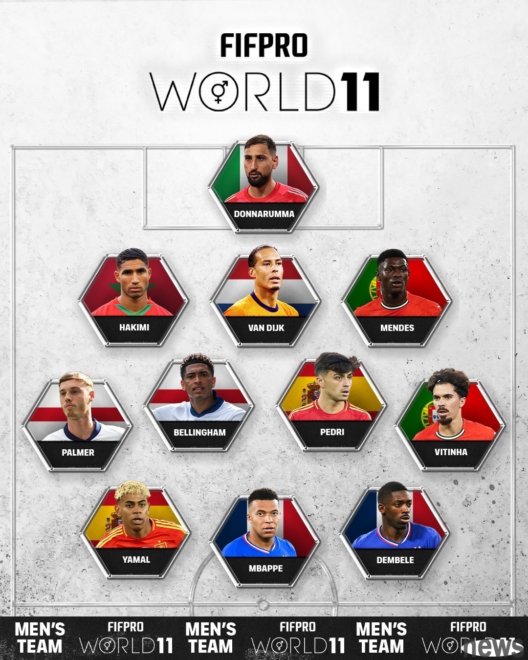 FIFPRO Annual Best 11: Dembele, Mbappe, Yamal, Pedri, Bellin selected