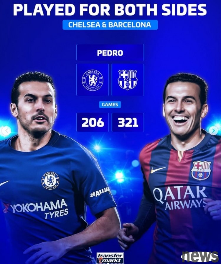 Pedro: Chelsea 206 games, Barcelona 321 games