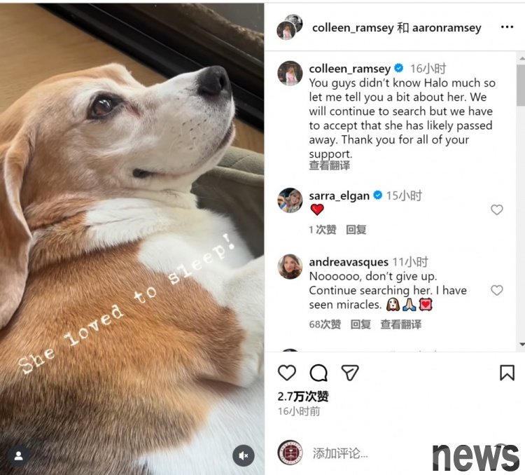 The Ramseys posted a video of the dog on social media with the text: "You don't know much about Halo, so let me tell you something about her. We will continue to search, but we have to accept the reality that she may have passed away. Thank you for your support."